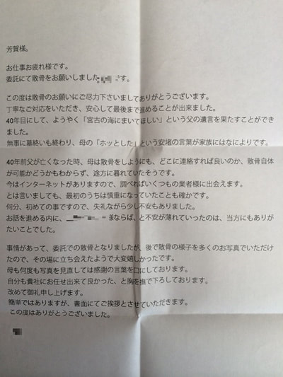 ・墓じまい、離壇を予定しておりお墓から出したお骨を散骨されたい・・・