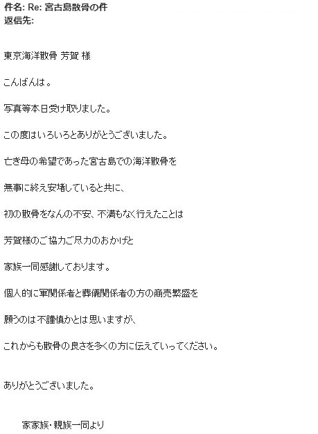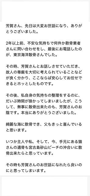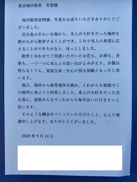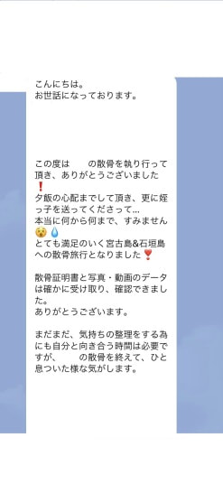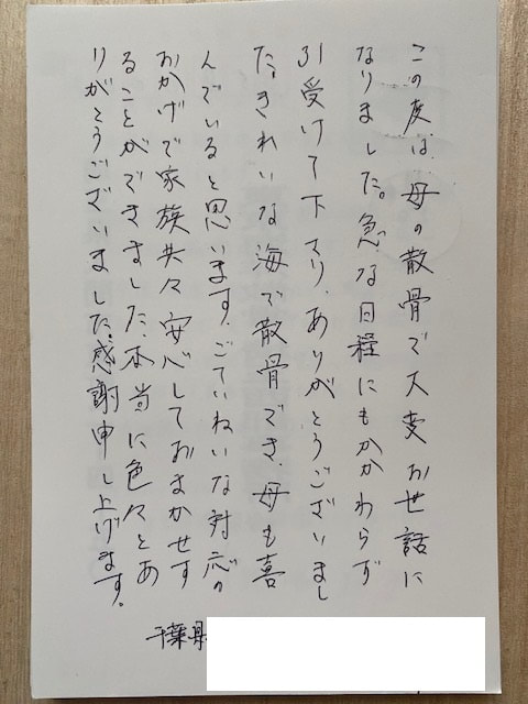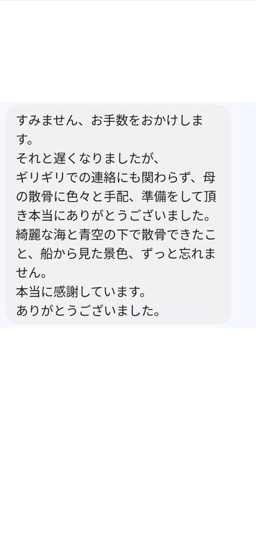処分という意味合いで海洋散骨をお考えの方はどうか他の散骨会社にご依頼下さい。