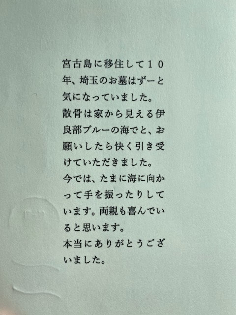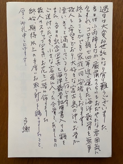 ・故郷が沖縄であり他都道府県で暮らしていたが沖縄の海で眠りたい・・・