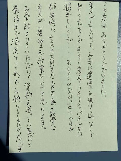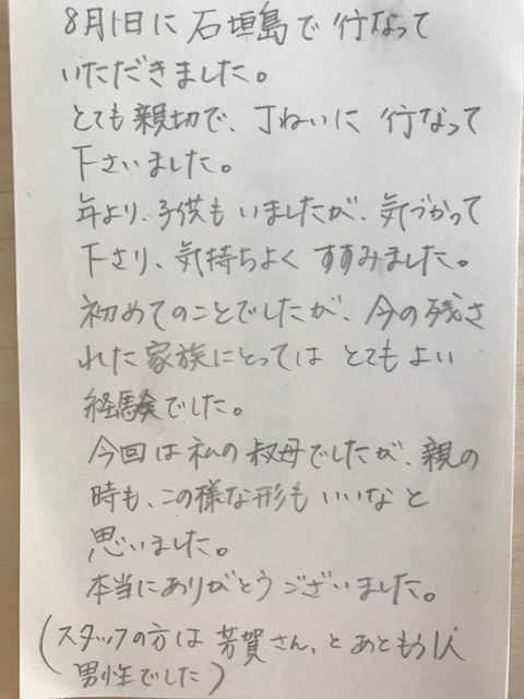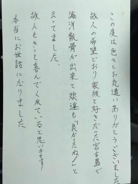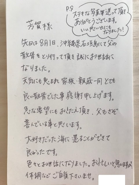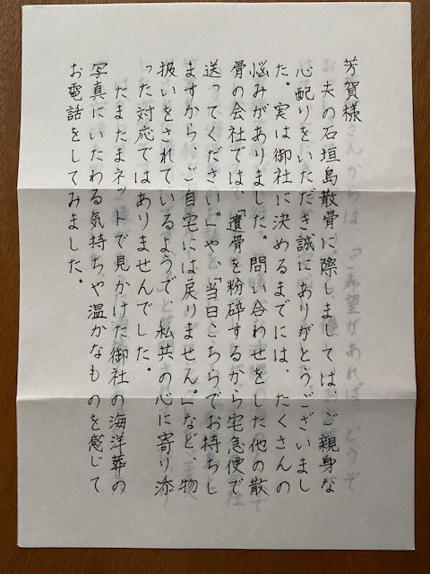 ・故人様が沖縄の地、沖縄の海が大好きだったからそこで休ませてあげたい・・・