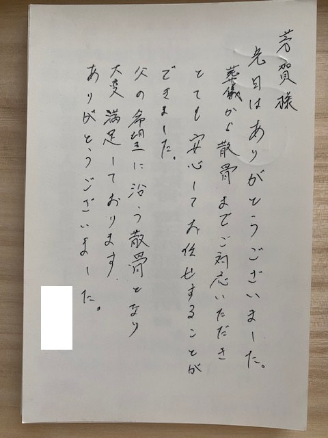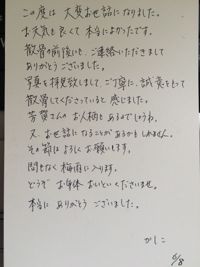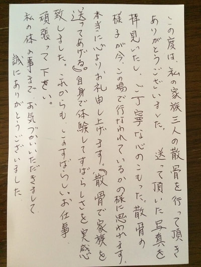 ご遺骨のお預かりの際も地理的に問題なければ郵送ではなく極力ご家族様とお会いしご家族様のお話を聞き、故人様の生前のお話も聞いたりします。