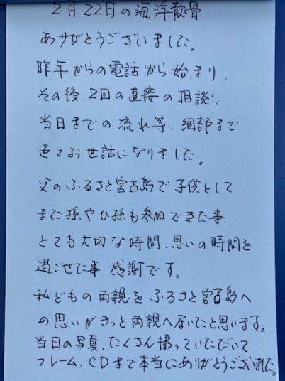 ・海洋散骨を行うことは決まっている。同じ海であれば日本国内の美しい沖縄の海で・・・