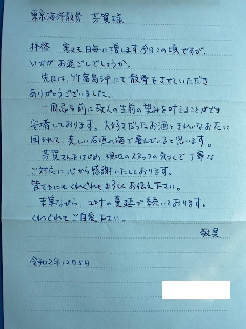 そうすることによって故人様のことを思いながら海に散骨させていただくことができるのです。